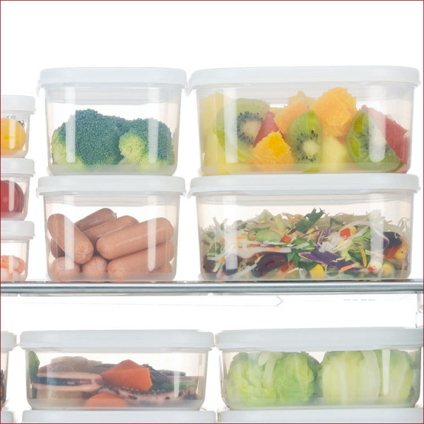 Dùng hộp đựng chuyên dụng Diện tích tủ lạnh sẽ được tiết kiệm tối đa với hộp đựng chuyên dụng khi các hộp được sắp xếp ngay ngắn, gọn gàng. Bảo quản thực phẩm trong hộp cũng sẽ giúp cho các mùi thức ăn không trộn lẫn vào nhau, đồng thời không gây ô nhiễm cho tủ lạnh, đảm bảo vệ sinh thực phẩm. Ngoài ra, sử dụng các hộp đựng hình chữ nhật hoặc hình vuông cũng tận dụng tối đa không gian tủ lạnh thay vì sử dụng hộp đựng hình tròn. Bên cạnh đó, việc dán tên