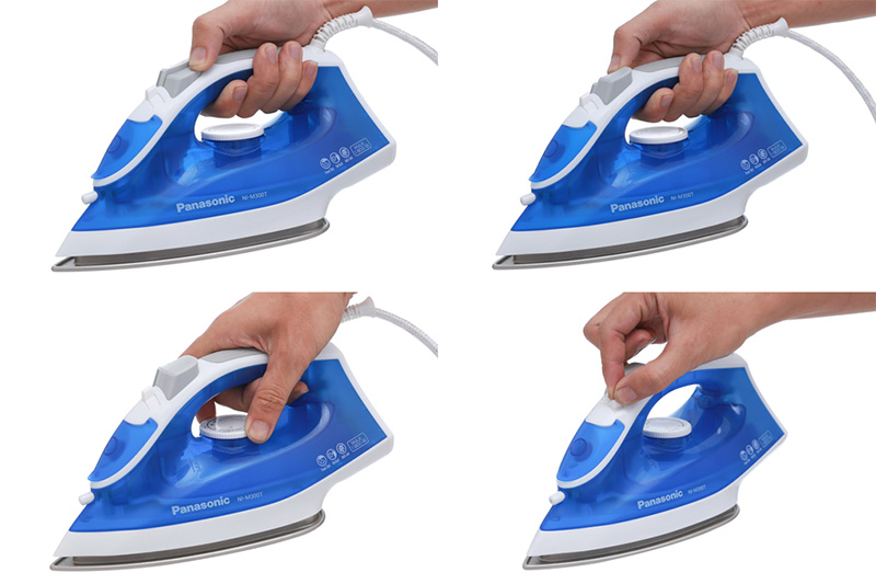 – Phun tia: tia nước được phun trực tiếp lên vị trí cần là ủi, giúp nước thẩm thấu sâu hơn, dễ làm phẳng hơn; đặc biệt hữu ích khi ủi li quần áo.