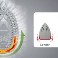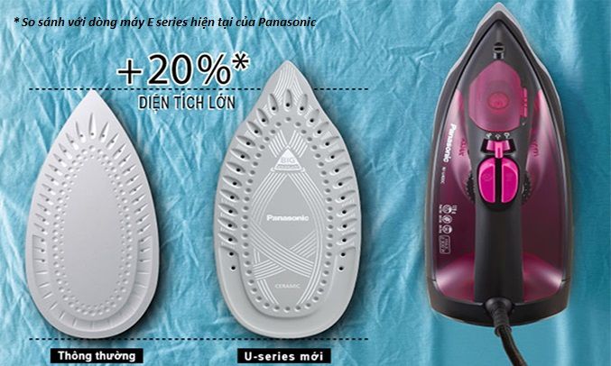 Bàn là hơi nước Panasonic có 27 lỗ thông dọc rãnh chữ U tản đều mặt đế tăng hiệu suất tạo hơi nước. Đế độc đáo cạnh tròn và cấu tạo viền cong ủi không vướng, không làm co vải.