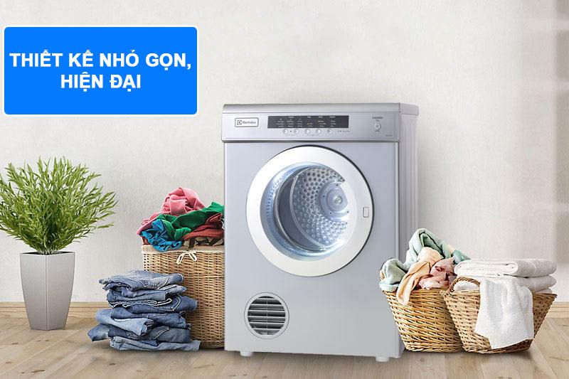 Máy sấy quần áo Electrolux EDV8052S 8 kg có thiết kế lồng ngang hiện đại, màu sắc trẻ trung thanh lịch, phù hợp với thị hiếu của đại đa số người dùng. Với kiểu dáng gọn nhẹ, bạn có thể đặt máy sấy quần áo Electrolux bên cạnh máy giặt hoặc treo tường, tiết kiệm diện tích cho không gian nhà.