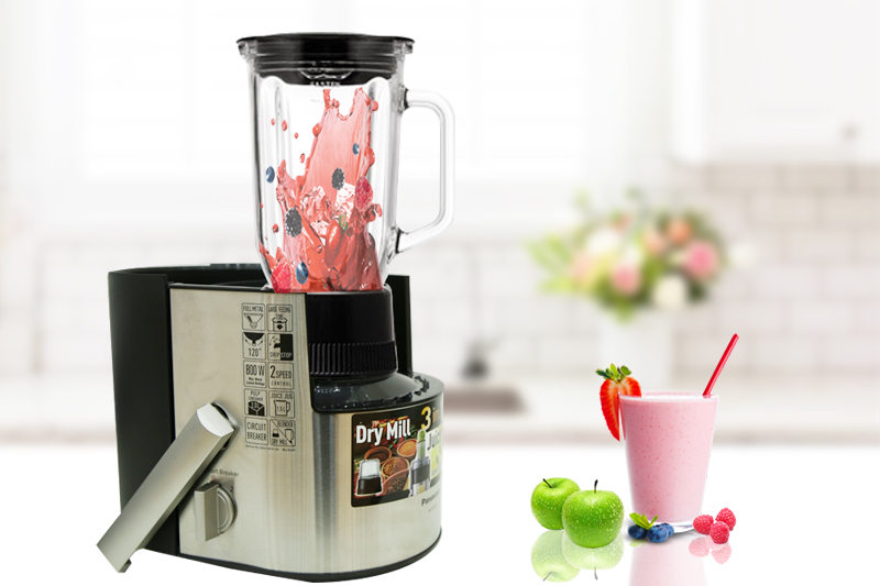 Máy xay đa năng Panasonic MJ-DJ31SRA là dòng sản phẩm cao cấp 3 trong 1 với chức năng ép trái cây hay xay sinh tố với cối xay kèm theo hoặc bạn cũng có thể xay thực phẩm khô cùng cối xay nhỏ trong bộ sản phẩm. Chỉ với một chiếc máy xay đa năng này, có thể thay thế cho máy ép trái cây, máy xay sinh tố, giúp bạn tiết kiệm được điện năng cũng như diện tích không gian trong nhà. Máy xay đa năng Panasonic MJ-DJ31SRA được trang bị công suất 800W, điều khiển bằng hai tốc độ, cho phép bạn lựa chọn công suất phù hợp tùy vào độ cứng của nguyên liệu, thực phẩm.