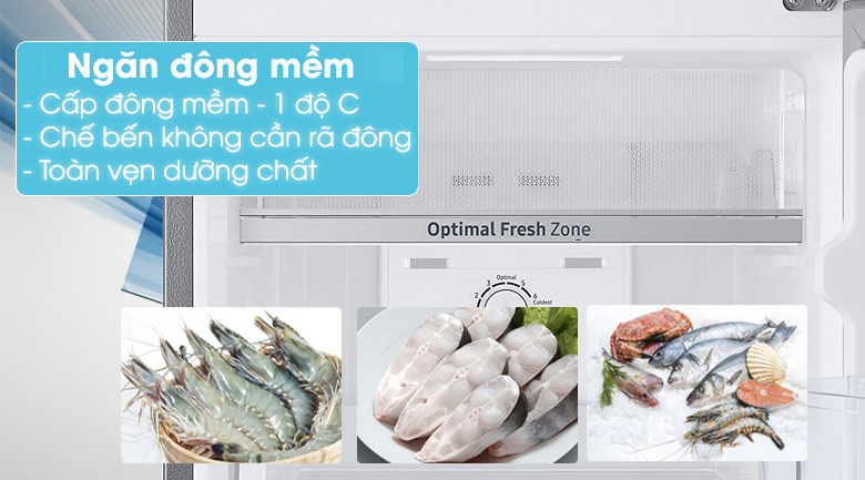 Ngăn cấp đông mềm này giúp thực phẩm được bảo quản lạnh ở nhiệt độ -1 độ C mà không bị đóng băng, dễ dàng nấu ăn ngay không cần rã đông, giảm thiểu việc mất dưỡng chất, từ đó đảm bảo lưu giữ hương vị cũng như các chất dinh dưỡng đầy đủ như khi mới mua về.