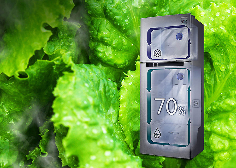 Công nghệ 2 dàn lạnh độc lập Twin Cooling Plus tạo môi trường riêng biệt, nhờ đó giữ được độ ẩm đến 70%, vượt trội hơn hẳn 30% độ ẩm ở tủ lạnh một dàn lạnh thông thường. Ngoài ra, công nghệ này còn giúp tránh lẫn mùi thực phẩm ở mỗi ngăn, giúp thực phẩm của bạn không bị khô héo và luôn tươi mọng lên đến 10 ngày.