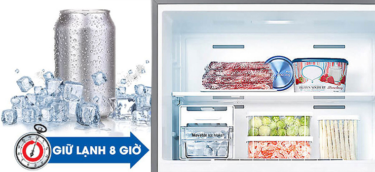 Khi xảy ra sự cố mất điện, tấm giữ nhiệt Cool Pack tự động lan tỏa ra hơi lạnh, giúp lưu lại hơi lạnh bên trong ngăn đá lên đến 8 tiếng. Thực phẩm sẽ được bảo quản với nhiệt độ ngang bằng nhiệt độ trước đó, và không mất thời gian làm lạnh trở lại khi có điện.