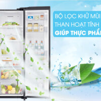 Tủ lạnh Samsung trang bị bộ lọc than hoạt tính giúp khử mùi hôi hiệu quả nên tủ lạnh không bị bám mùi khó chịu, không ảnh hưởng đến hương vị của thực phẩm hay các món ăn. Ngoài ra, bộ lọc than hoạt tính cũng giúp loại bỏ vi khuẩn có hại, bảo vệ an toàn thực phẩm.